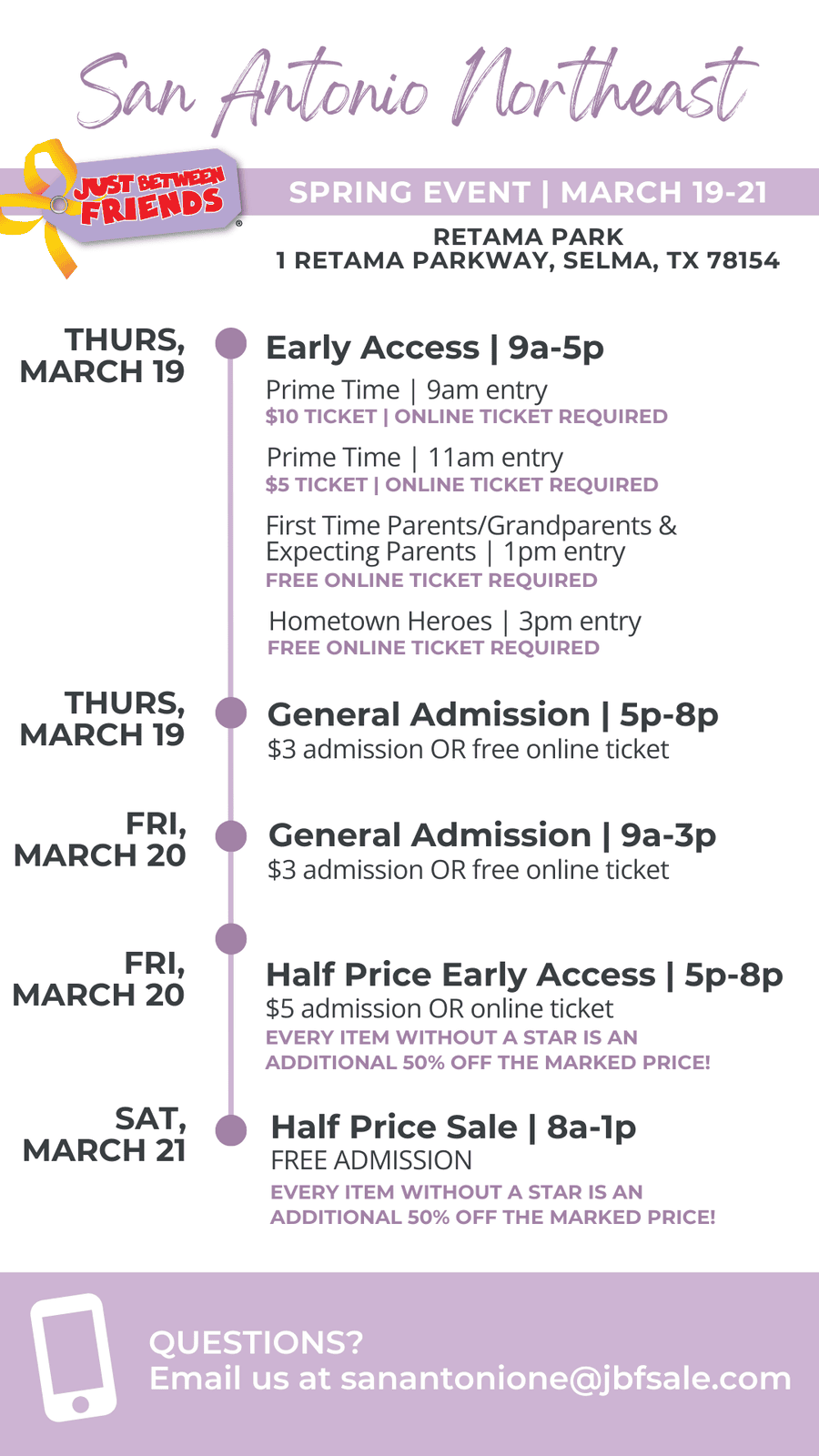 During general admission shopping hours, admission is $3 at the door (kids always free). Save $$$ by claiming a free ticket below!
